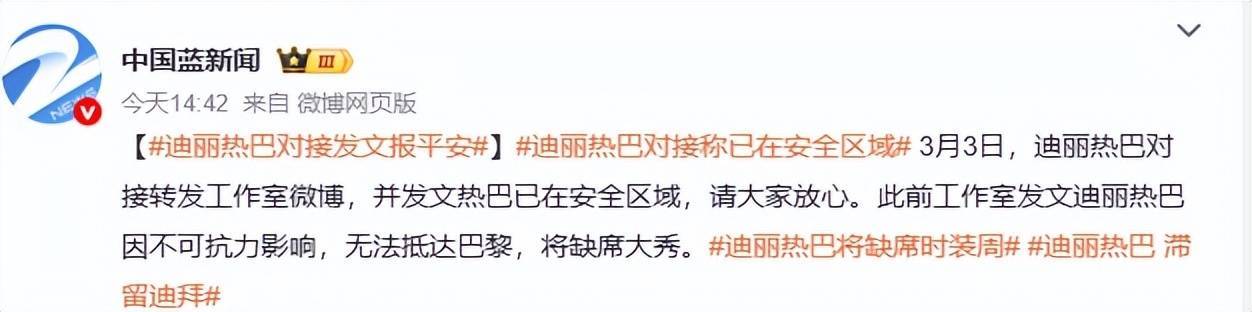 同时也特意告诉大家,热巴目前一切平安,和团队在一起互相照应,还特意强调热巴已经在安全区域,让大家彻底放心。